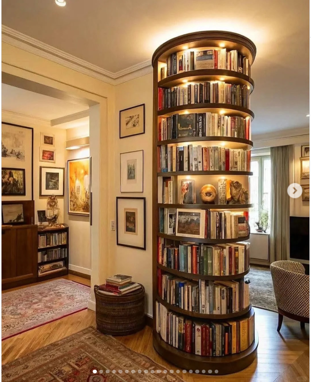 A reading corner brings warmth ,and a cozy chair alongside it with fluffy pillows resting on it creates an environment to relax.