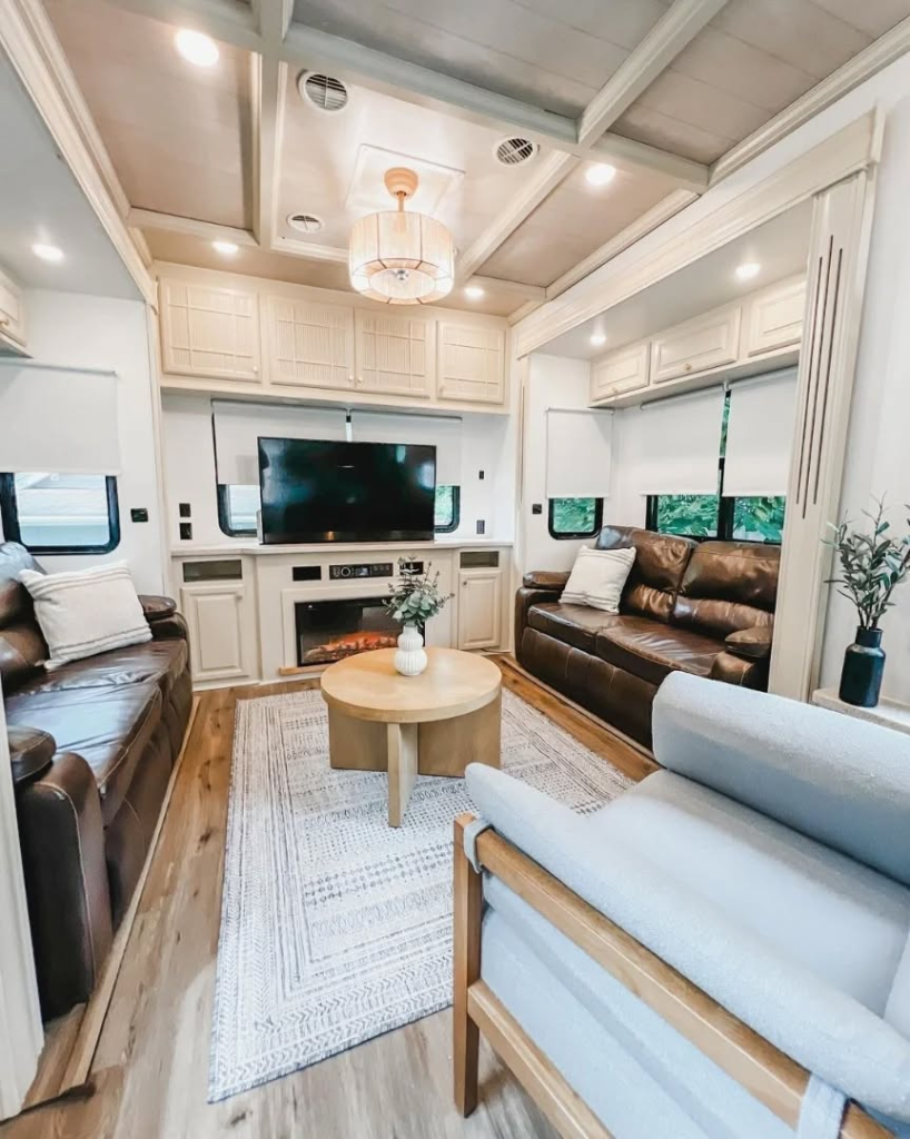 Therefore, even when you are staying in the RV as a full-time RVer or simply have a mini vacation, it is possible to make the interior of the RV a luxurious and comfortable home to feel airy and inviting.