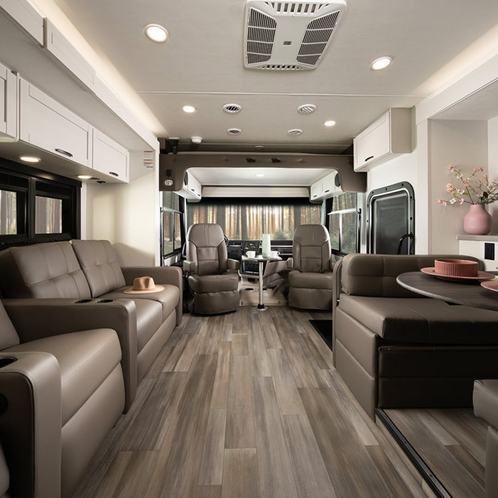 The details such as plants, wood decorations and rock finishings in your RV living room make you relaxed and feel part of the environment.