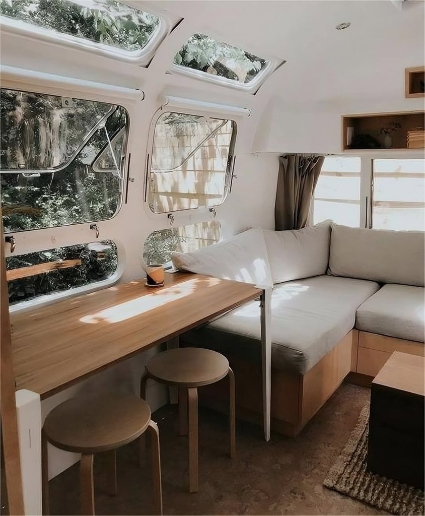 Looking for an RV living space with a kitchen and a view from the window, then you can opt for this. Having warm color tones and a simple design makes all the difference.