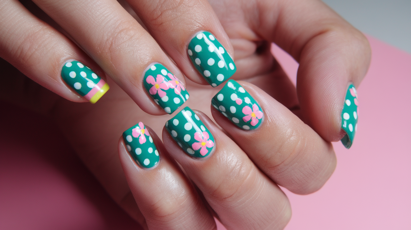 Add playful polka dots to pastel bases. Think white dots over peach or lavender backgrounds for a cute retro feel.