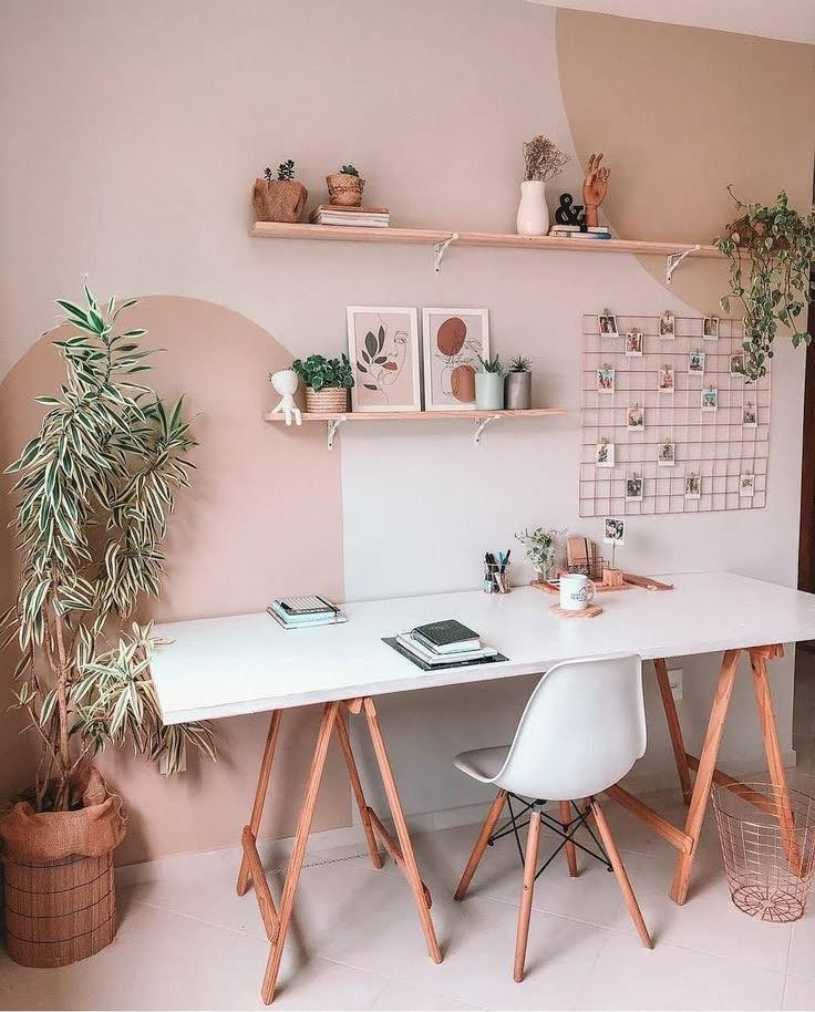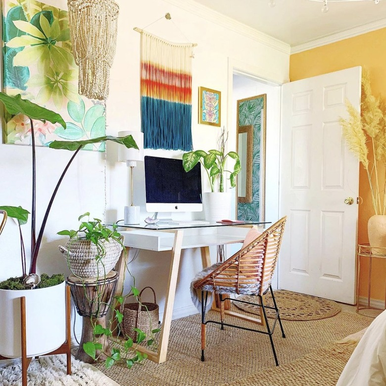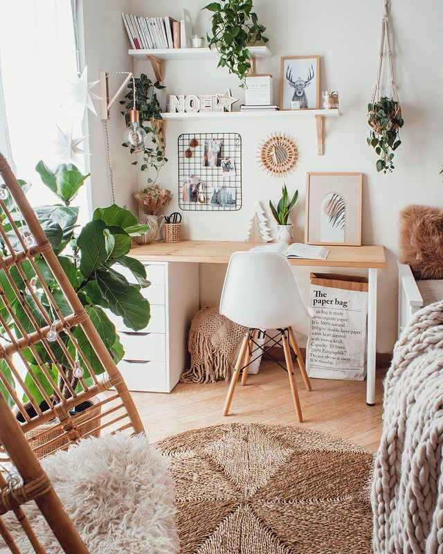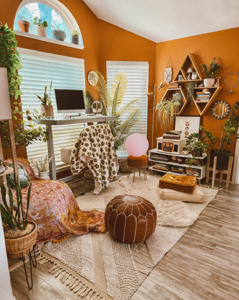 To give your office a boho space feel to your office, you have to give your office an earthy or warm tone.