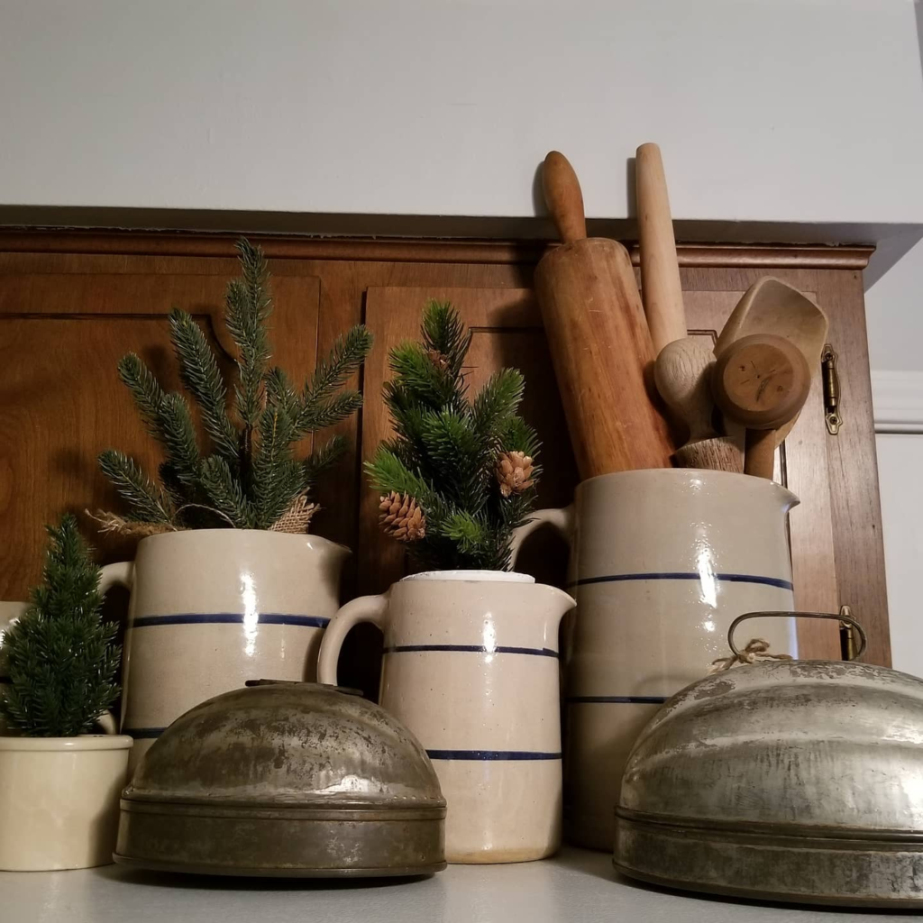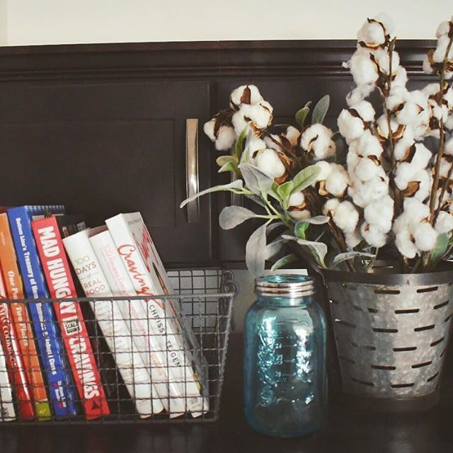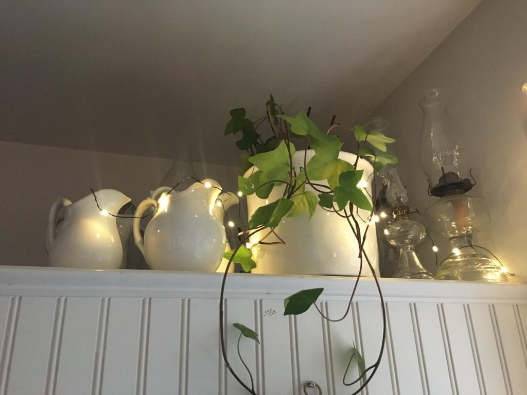 I must say, artificial potted plants with hanging succulents fit well with farmhouse style kitchens.
